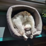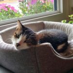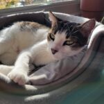 Brandy is brightness paws-onified. Confident and independent, she prefers playing on her own but she’ll often follow her foster mom around and sometimes sleeps on the bed with her. Admirably dog savvy when it comes to the three resident dogs of various sizes, and tolerant of the other senior cat, she loves her food, a perch for window views and napping. Learning about being held for small snuggle sessions and fully litter box trained, Brandy will do best in a loving home that respects her independent ways while teaching her more about the pleasures of snuggling.