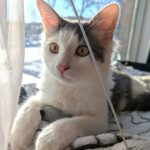 Frosty, so friendly and so frisky, is a sweetie who loves being petted and cuddled. Eager to be involved in everything — from waiting outside the bathroom door to “helping” his foster mom cook – he also loves snuggling with his brother Marble, playing either with them or on his own as much and as often as possible. Cheerfully chatty, happiest sleeping in bed with his fosters and fully litter box trained, Frosty is eager to bring his legendary friendliness to a loving fur-ever home.