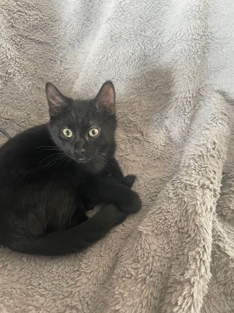 Lovable Leo, so calm and so quiet, loves cuddling with his foster mom, and when he wants pets, he lets her know with a few insistent meows. As active as he is affectionate, he also loves playing with his siblings, playing and catching their mice toys and then either watching the birds outside the window or sleeping in sunbeams. Wonderfully well mannered and fully litter box trained, Leo would love to be loved by an equally loving adoptive home.