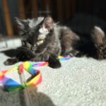 Monkey may be small in size but she’s LARGE in her lust for life! Curious about the world, she’s eagerly exploring her foster home and has healed purr-fectly from having one eye removed. Gentle and genial, she especially enjoys having her belly rubbed, snuggling next to her foster mom on the chair and in bed, head butting her and flopping over onto her back for the attention she adores. Blessed with the cutest and quietest of meows, she chirps and twitches her tail when she’s excited, now engages easily with her feline foster friends, and feasts on tasty food and treats. Not yet a fan of being picked up but fully litter box trained, Monkey will thrive in a home filled with snuggles, food and another friendly kitty as her fur-ever playmate.