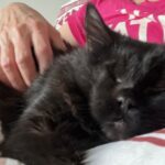 Monkey may be small in size but she’s LARGE in her lust for life! Curious about the world, she’s eagerly exploring her foster home and has healed purr-fectly from having one eye removed. Gentle and genial, she especially enjoys having her belly rubbed, snuggling next to her foster mom on the chair and in bed, head butting her and flopping over onto her back for the attention she adores. Blessed with the cutest and quietest of meows, she chirps and twitches her tail when she’s excited, now engages easily with her feline foster friends, and feasts on tasty food and treats. Not yet a fan of being picked up but fully litter box trained, Monkey will thrive in a home filled with snuggles, food and another friendly kitty as her fur-ever playmate.