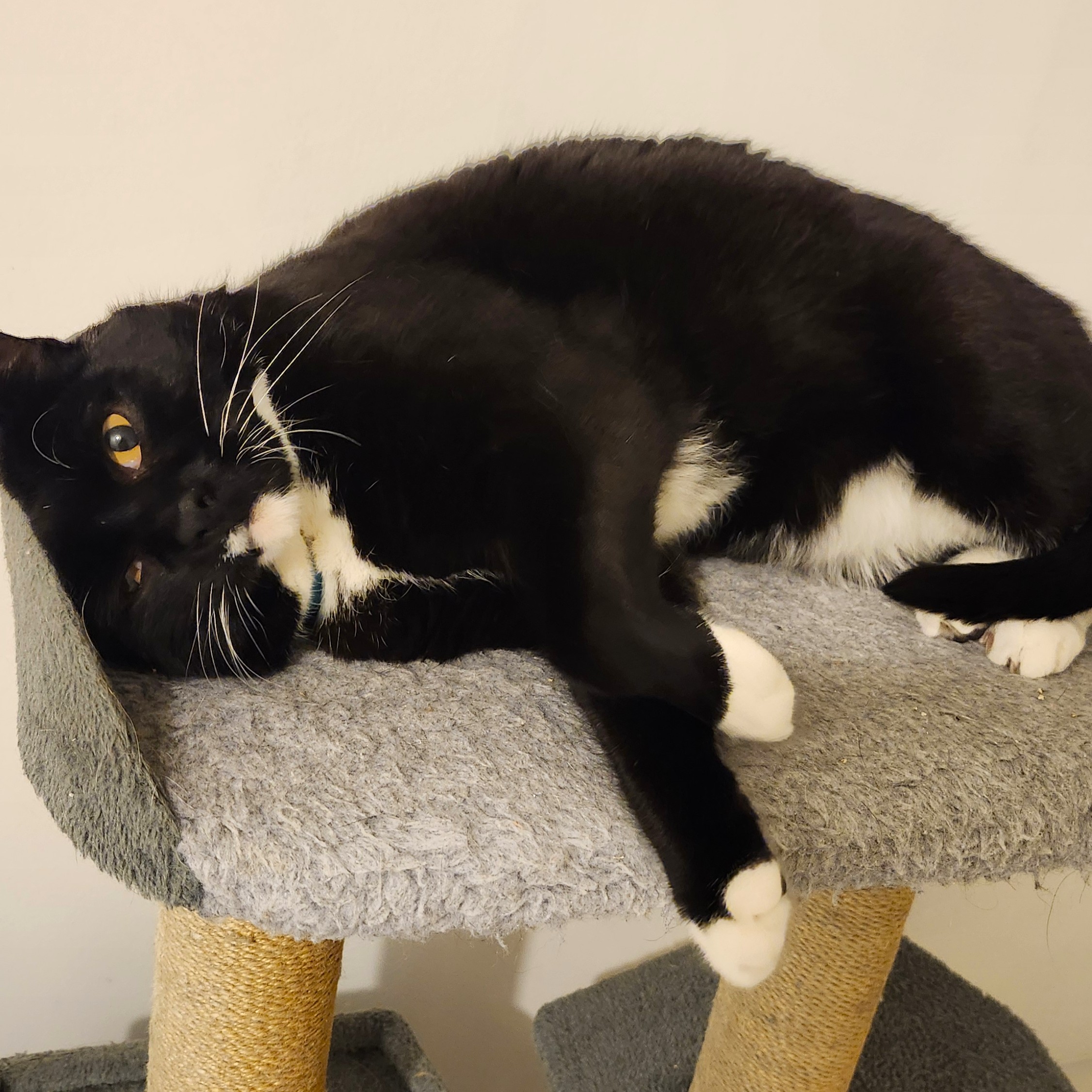 Oolong oozes love from every kitty cat pore! A very faithful companion, he loves his people, eagerly greeting them and saying “hello” whenever they come home. Sweet, affectionate and getting used to being picked up, he loves sitting on his foster mom’s chest with his paws curled in to get the pets that he craves. Playing independently with toys, especially string toys, he spends most of his day on the cat tree, welcomes pets from strangers and says “hello” to all visitors. Wonderfully well mannered and fully litter box trained, Oolong would make a purr-fect companion for any home with older children.