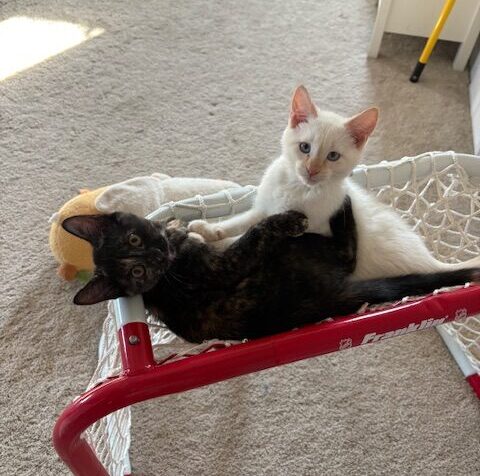 Rah-rah for Root Beer! An all around adorable kitten, smart and sociable, she loves the adults and children equally in her foster home. As much as she enjoys being in their company and receiving their pets, she also enjoys playing with her littermates and is allowed on the counters because of the resident dogs. Fully litter box trained and looking for love, little Root Beer will win raves in any adoring adoptive home.