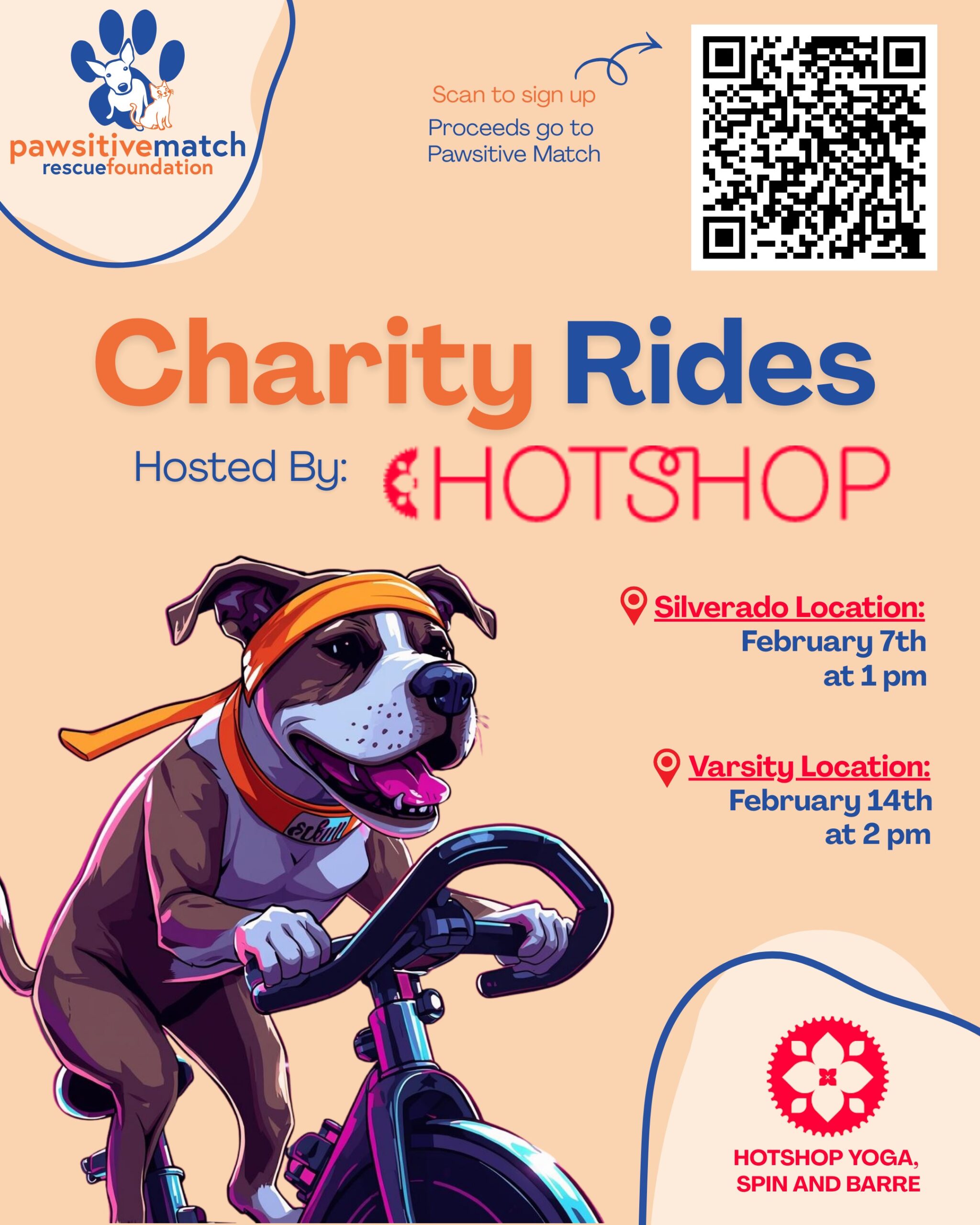Join us for Charity Rides, a heart-pumping spin event hosted by Hotshop Yoga, Spin & Barre, in support of Pawsitive Match Rescue Foundation. This special event brings together fitness, fun, and compassion, with all proceeds going directly toward helping rescue dogs in need. Whether you are an experienced rider or trying spin for the first […]