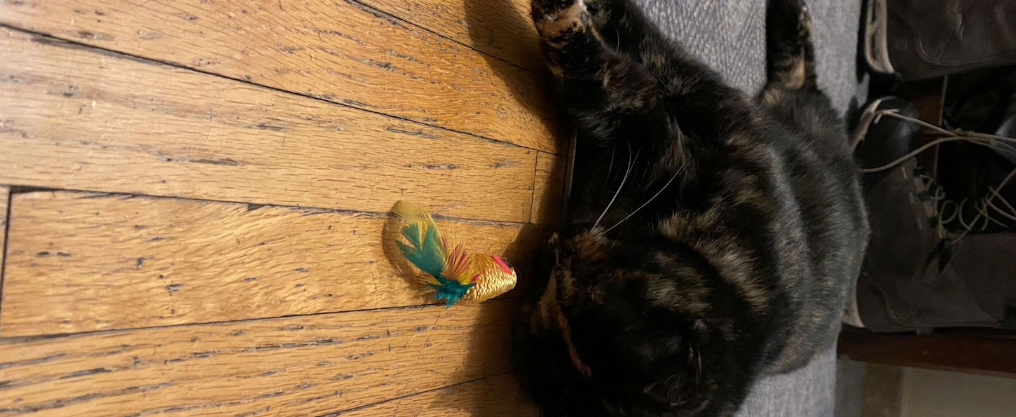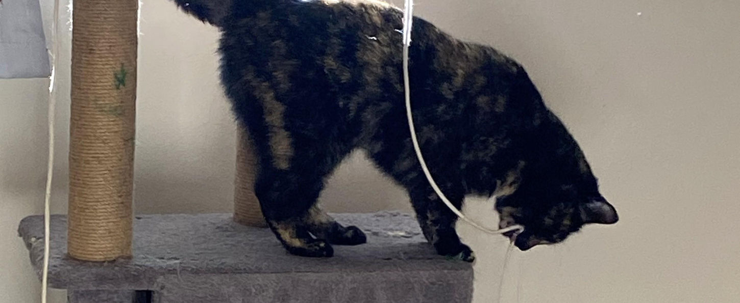 Ever so endearing, Elena enjoys nuzzling her foster dad for attention, rolling over so that he can rub her belly and chest, and then ensuring that she always knows where he is. Endlessly playful, she also enjoys chasing balls around the room, not to mention wrestling with folded tube socks, both cuddling and attacking them! Not especially fond of being cuddled herself, she sleeps soundly at the foot of her foster dad’s bed at night, knows not to touch houseplants and is fully litter box trained. Now what Elena would truly enjoy is staying active fur-ever in an affectionate adoptive home.