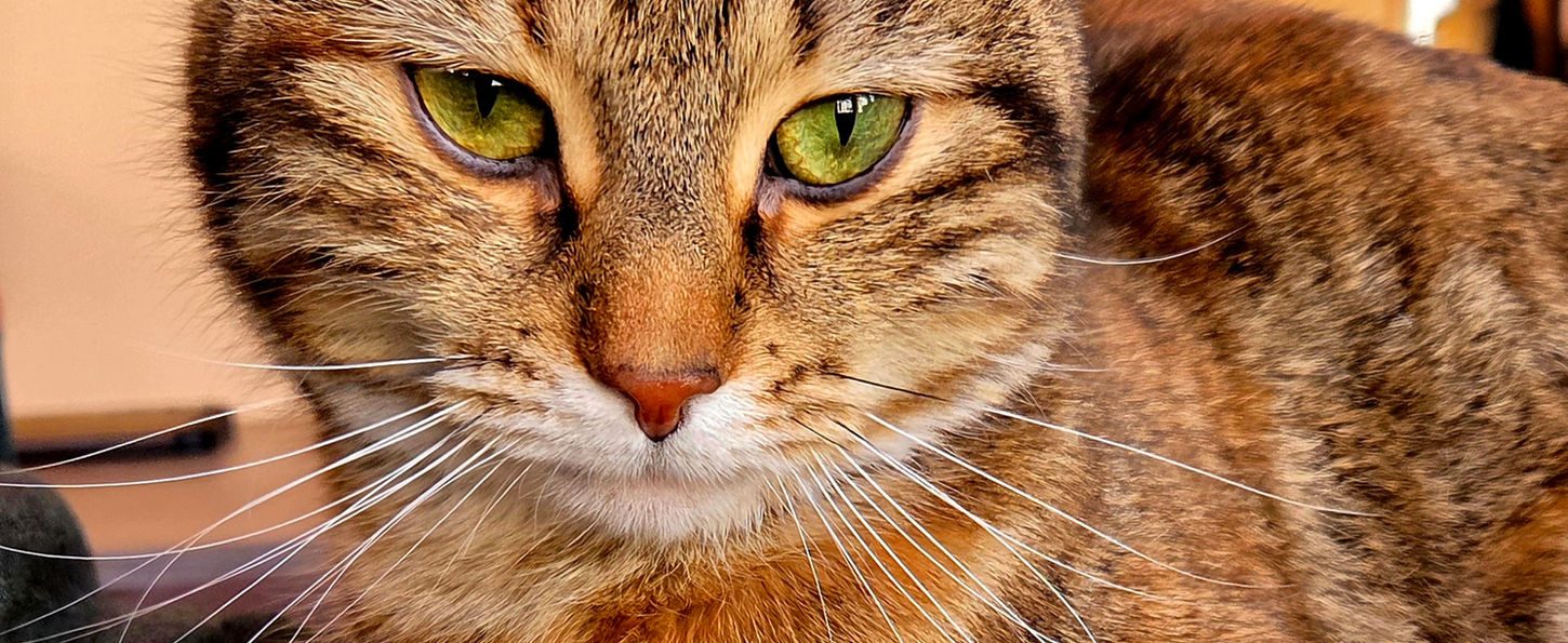 Kate puts the “k” into kindness. Blessed with the brightest green eyes and a heart of pure gold, she’s the purr-fect people pet, sweet and independent, asking for the affection she adores on her terms. Preferring not to be picked up, she would rather join her fosters on the couch during the day and in bed at night when she’s feeling especially social. And yet, she’s their faithful shadow that gaily greets them at the door when they return home and revels in receiving their head kisses, snuggles and pets. Fond of her cat tree, string toys, watching birds outside and fully litter box trained, kissable Kate will do best as the sole kitty companion in a loving adoptive home.